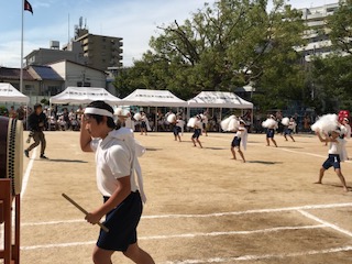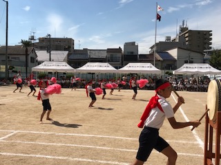 運動会の午後は、応援団から始まります。練習の成果をしっかり披露していました。みんなのエネルギーです。