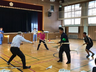 今日は、子ども達の下校後に教職員の防犯、不審者対応の研修会を実施しました。淀川警察やセーフティ淀川のみなさんから、さすまたなどの使い方から実践、不審者侵入を想定した対応の演習をしました。子ども達の安全、安心を守るため、がんばっています。