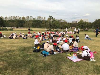 たてわり班ごとに、仲良く食べています。