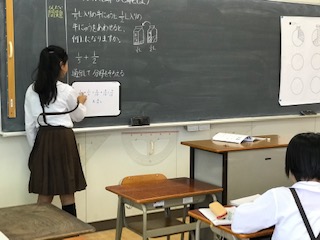 こちらでは、考えたことを表現し、発表する力を伸ばすため、友だちと話し合ったり、ホワイトボードで発表したりなどして、学習を進めています。