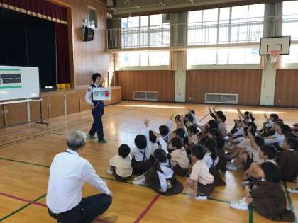 「自分の命を守るため」に、信号の渡り方、標識について勉強しました。