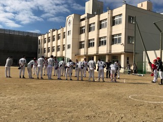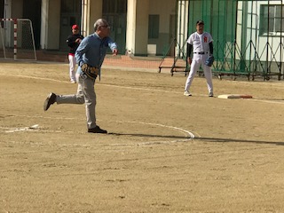 始まりました!本校教員もメンバーで活躍、校長先生も始球式で登板、見事、ストライクゾーン!みなさん、がんばってくださーい!