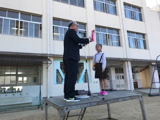 跳び箱運動や玄関掲示作成の頑張りで、今日は2年生が11月のガッツ賞を授与されました。これからも、みんなで力を合わせて頑張ってください。