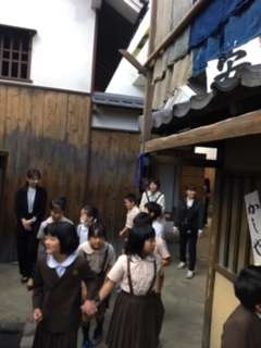 昔の人のくらしについての学習で、天神橋筋六丁目にある「くらしの今昔館」へ行きました。昔使われていた洗濯機や灯り、ふでばこなどについての体験する学習時は木川南小学校だけの貸し切り状態だったので、たくさん質問して、たくさん体験させていただきました。江戸時代の街並みが再現された場所では、たくさんの外国人の方と、江戸時代にタイムスリップしたような気持になりました。