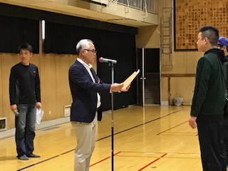 今年度は、本校が七校園の幹事校のため、閉会式では、PTA会長の司会のもと、校長先生が表彰状やトロフィーを授与しました。無事に終了いたしました。みなさん、ありがとうございました。