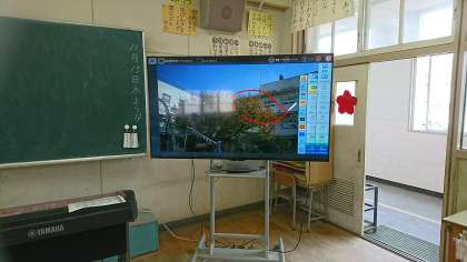 教室にある大型テレビに、子ども達の写真を写し、全員で共有しました。