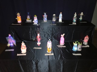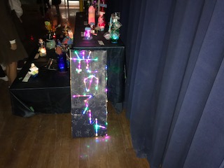 LED ライトを使った作品は、舞台上の暗がりを利用し工夫して展示しました。冬の夜のイルミネーションみたいにワクワクする空間でした。