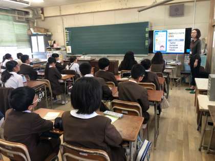 2時間目に講師の方を招き、スマホ人権教室を開いていただきました。スマートフォンの使い方や危険性について、お話や動画を通してわかりやすく教えていただきました。