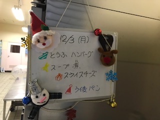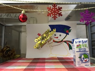 メニューボードやサンプルケースも、12月を楽しく迎えています。冬休みがワクワク待ち遠しくなる給食室です。