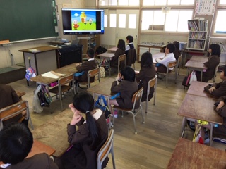 NTTと人権協会から2名の方に講師として来ていただき、スマホに潜む危険性や人権を侵害されるような事象に遭遇した時の対処方法などについて、お話しいただきました。「スマホをさわったことのある子は?」「LINEを知っている人?」の質問には、全員手をあげていました。アニメーションやわかりやすいお話を通して、大切なことを学ぶことができました。今一度、ご家庭でも携帯電話の必要性や約束事についてお話し合いいただけたらと思います。
