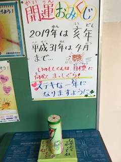 みなさんを楽しい気持ちにさせる掲示やおみくじです。さぁ、おみくじで、大吉がでるかな?