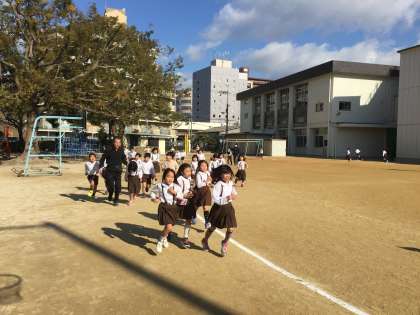 今週から、冬のかけ足運動が始まりました。15分休憩に、奇数学年と偶数学年に分かれて運動場を走っています。