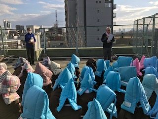 地震と津波を想定した避難訓練を行いました。子どもたちは真剣に訓練に取り組み、校舎の屋上まで、素早く避難しました。この機会に、ご家庭でも、もし災害が起きた場合、どこに避難するかなど、話し合っていただけたらと思います。