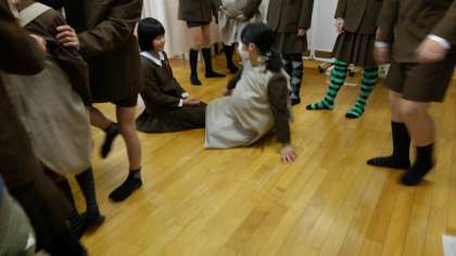 5年生はいのちの学習の後に妊婦体験をしました。約7kgの大きなお腹を抱えてゆっくりすわったり、寝ころんだり、靴下を脱いだりはいたりしました。階段を上ったり下りたりもしました。とても重くて動くのがたいへんだったようです。10か月もの長い間お腹の中で大切にされていたことを実感できたようでした。