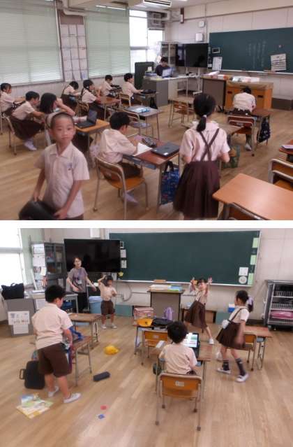登校してすぐにそれぞれの教室をのぞいてみました。チャイムが鳴るまでは思い思いの時間を過ごしていましたが、8時30分のチャイムが鳴ると、スッと朝の取組をみんなでスタートしています。切り替えがすごく上手ですね!また学年が上がると、心の天気の入力や連絡帳の記入などを事前にテキパキと済ませていて、Kahoot!で国名あてクイズをしたり読書をしたりと、ゆっくりとした時間を過ごしています。いいね〜!