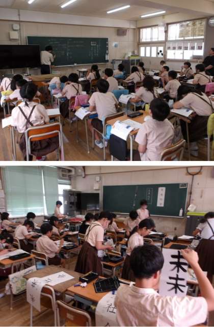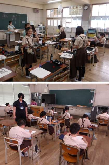 画像(中)4年生 書写 毛筆「社会」片付け中!