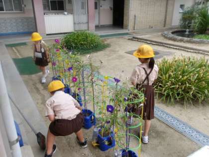 ボール遊びドッヂビーや一輪車はもちろんのこと、夏休み中に人工芝を張った遊具でも遊んでくれて、いつもとは違う笑顔を久しぶりに見ることができて本当にうれしいです。また、1年生のみなさんはアサガオに水をあげてから遊びに出るなど、やさしい一面も見せてくれました。みんないいね〜!