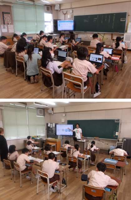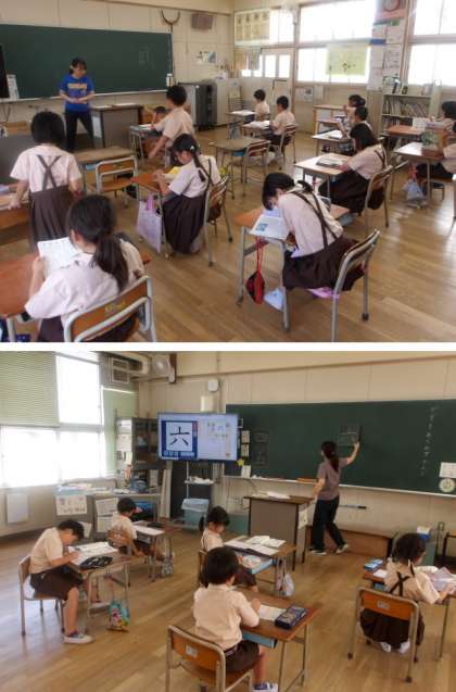 お昼休みもグラウンドで遊ぶ人がたくさんいました。お昼は午前中よりも暑くなるので、熱中症対策のため遊ぶ前後にはしっかりと水分補給をしてくださいね。そのあと5限の授業も元気に取り組んでくれています。テストを行っている6年生は、とても集中していて緊張した空気が流れています。一方で、顕微鏡やタブレットを使って楽しそうに学んでいるクラスもあり、どの学年もとても良い雰囲気です。いいね〜!