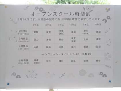 本日から9月26日(金)まで、オープンスクールを実施いたします。お子さまの学校でのようすをご覧いただくとともに、先日配布しました学校アンケートの参考にしていただければ幸いです。また、来年度に入学をお考えの保護者の皆さまも、ぜひお越しください。なお、ご来校いただく際は下記にご留意ください。