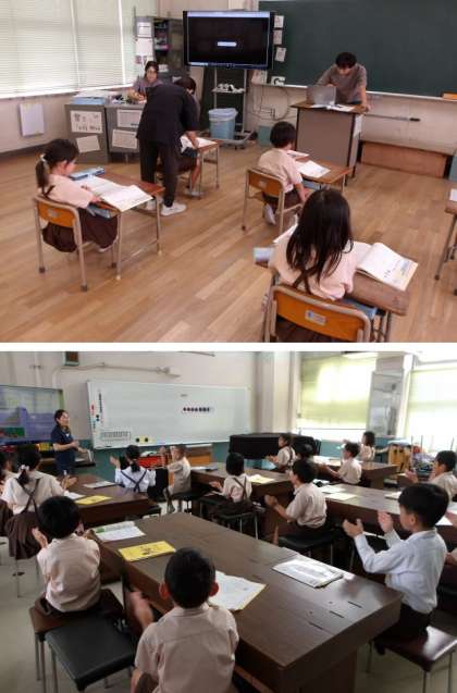 本来は3年生からアルファベットを学びますが、本校では全学年で普段からタブレットをよく使っているので、2年生のみなさんもアルファベットをある程度理解しています。子どもたちは、アルファベット入力を練習できるアプリ『らっこたん』のほか、『寿司打』や『ココアの桃太郎たいぴんぐ』などネット上で練習できるものも使って、楽しみながら練習しています。