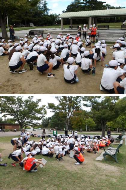 到着したら、たてわり班に分かれてオリエンテーリングに出発です!あれ?この人はいったい… ?