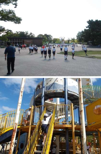 大盛り上がりのグループ遊びですが、先生が伝えていた時間が近づいて、続々と集合場所へもどってきてくれました。暑さが厳しくなってきたこともあって、少し時間を切り上げて帰校することにします。ゆっくり休んで、また明日は元気な顔を見せてくださいね!