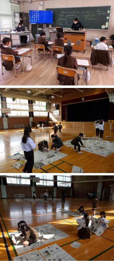 画像(上)2年生 図工 新聞紙を使って作ってみよう