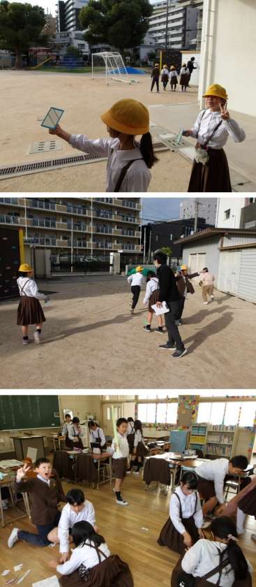 今日はいろいろな授業でグラウンドや講堂に移動しています。2年生はたくさんの新聞紙を使って、大きなおうちや道具を作ってくれました。3年生は鏡で光を反射させていて、ここから「どうしてだろう?」とみんなで考えていきます。どの学年も頭と身体を使って学んでいます。いいね〜!