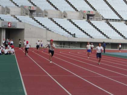 100m×4リレーが終わりました!スタンドへ戻って昼食です。