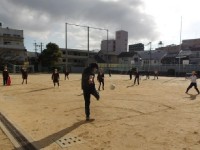 画像(上)5年生 体育館にて一緒に練習中