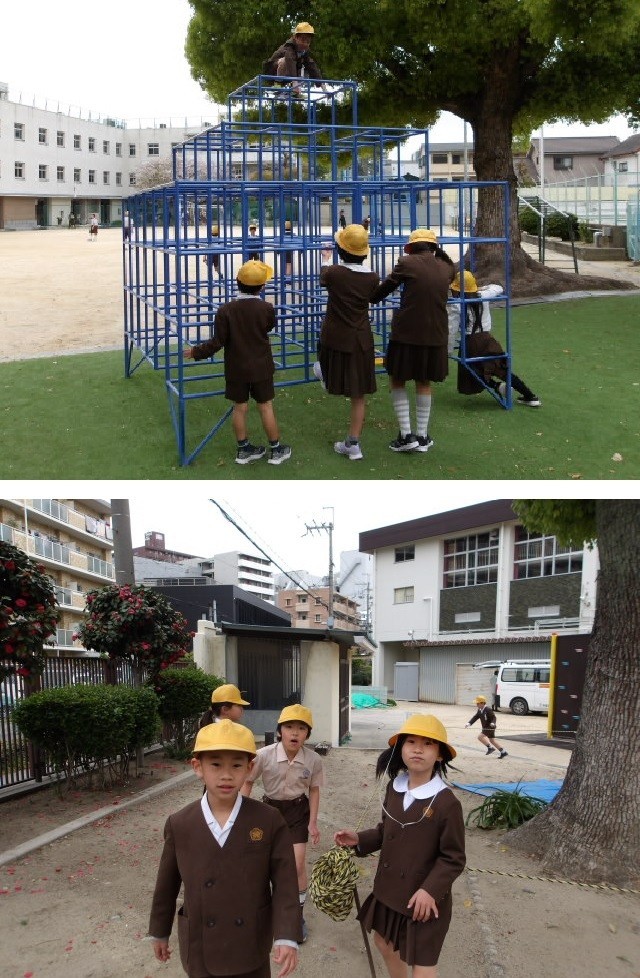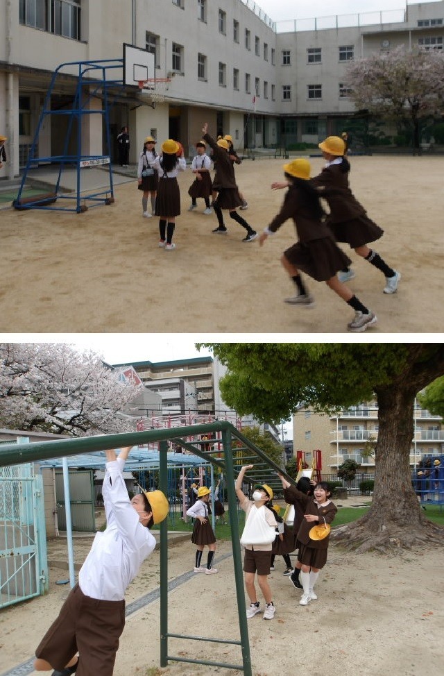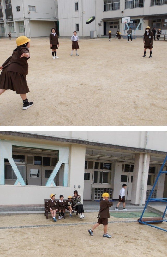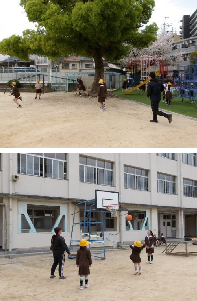 とても明るかった空が、どんどん曇ってきました。子どもたちも今晩から雨が降るのを知っているのか、休み時間にはたくさんの児童の皆さんがグラウンドに出て遊んでいます。また、1年生の皆さんも、担任の先生やお姉さんと一緒にボールで遊んでいます。いいね~!