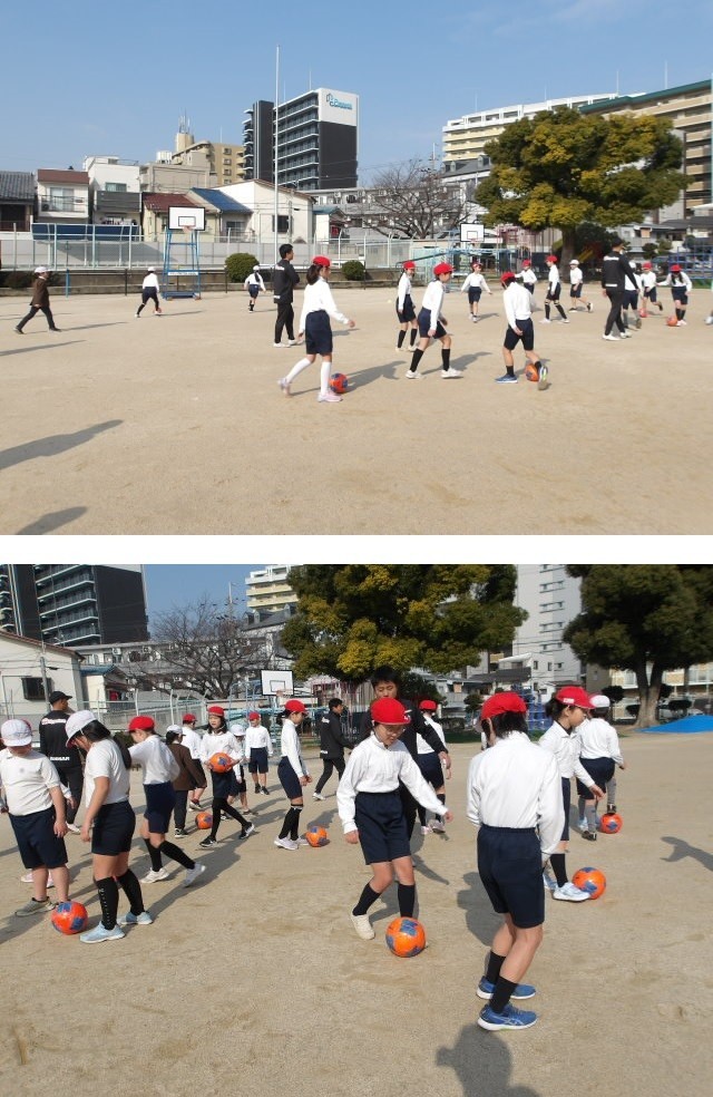 大阪市内でも雪が降った昨日に引き続き、今日もとても寒いです。校庭の池の水が凍っているのを「すごいねぇ」、「さわってみたいねぇ」とたくさんの児童の皆さんが眺めています。また、お昼休みも心なしかグラウンドに出てくる人が少ないような気がします。それでも、サッカー、バスケット、のぼり棒、おいかけっこなど、冬空でも元気いっぱいに遊んでくれる人がいて、とても嬉しくなります。お昼休みの後のそうじでは、縦割り班で協力してきれいにしてくれています。机上のぞうきんがけやろうかのモップがけ、トイレそうじなどで冷たい水を使っていても、「いつものこと」、「だいじょうぶ」と言える皆さんも、とても素敵です。みんな、いいね~!