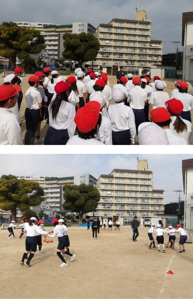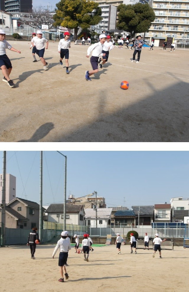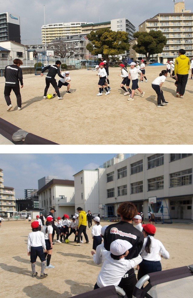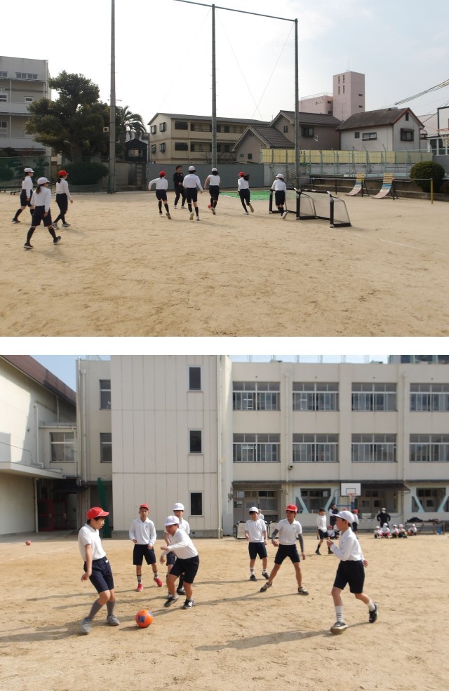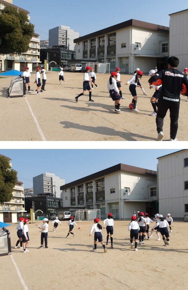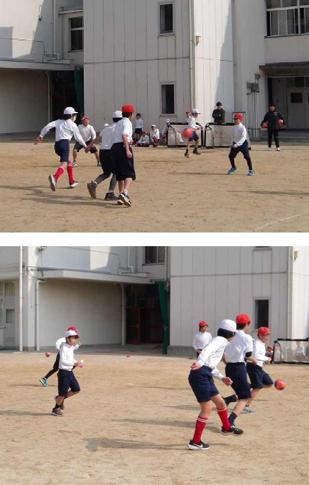 2限は3,4年生の皆さんと一緒に、サッカーの楽しさを教えていただくとともに、チームワークや周りを見て判断することを教えていただきました。
