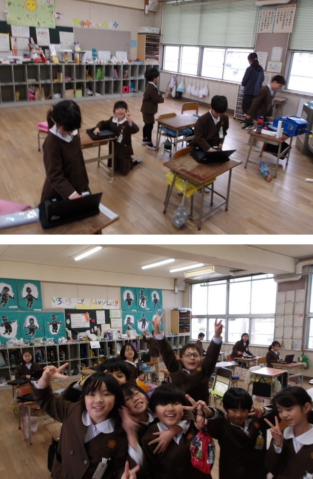 画像(上)1年生 心の天気を入力したあとは帰り支度