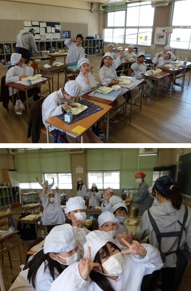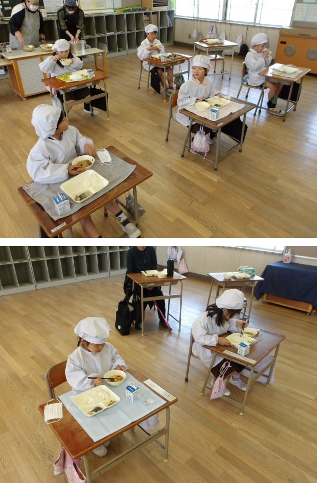 給食の時間も元気いっぱい!6年生の皆さんは、おかわりが欲しい人ジャンケンの2週目に入りました。また、2年生の皆さんは、校内放送の音楽に合わせてリズムよくモグモグと食べてくれています。いいね~!