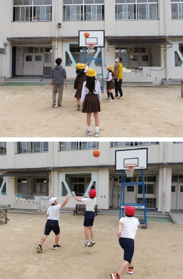 今日のお昼休みは、2限後の休み時間はそうじの縦割り班編成だったこともあって、たくさんの児童の皆さんがグラウンドに出てきて遊んでいます。また、今日は特にバスケットボールが盛んで、いろんな学年の皆さんが二手に分かれて楽しんでいます。いいね~!