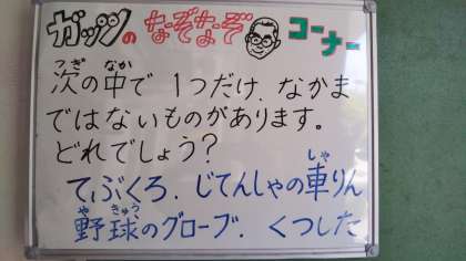 そうじの時間に、張り紙の変わらない掲示板を見て、「なぞなぞはまだですか?」と声をかけてくれた子どもがいました。子どもたちを励ましたり、元気づけたり、どれほどもできていない自分なのに、「嬉しいことを言ってくれるなあ」とつくづく思います。