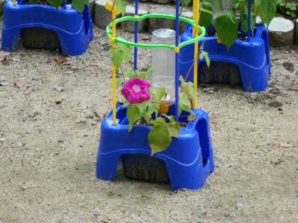 2年生のサツマイモもしっかり根が付きツルがたくさん伸びてきています。秋の実りを楽しみにしたいと思います。