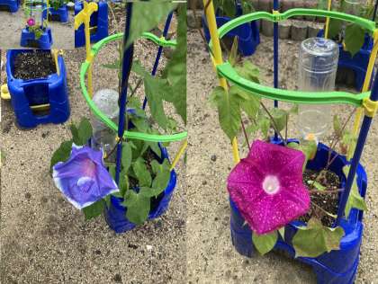 1年 アサガオが元気にさいたよ