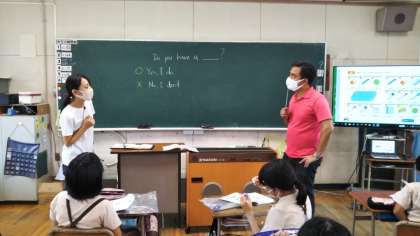金曜日の6時間目は、外国語活動の時間です。ネイティブの先生と担任とで、短い会話の見本を見せたりしながら、楽しく授業を進めていきます。