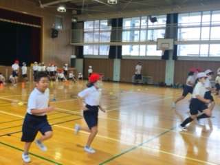 雨で運動場が使用できなかったため、3時間目に3・4年生、4時間目に5・6年生が、講堂で行うこととなりました。スタート時の手足の動きや、手をしっかり振ることで、スピードが上がることなどを教えていただき、実際に実践してみました。また、リレーではバトンパスをするときに声をかけることで上手に渡せるようになることや、相手のことを思いやることが大切であるといったことなどを教えていただきました。チーム競技では、運動技能もさることながら、チームメイトに対する優しさも重要であるということがよく分かりました。