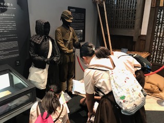 > ピースおおさかでは、映画「十六地蔵物語」を鑑賞後、グループ毎に展示物を見学してまわりました。