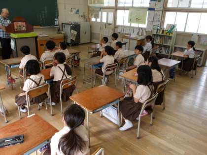 今朝は、読書ボランティア「くすくす」のみなさんに朝の絵本読み聞かせをしていただきました。いろいろな絵本や紙芝居のなかで、今回は連続テレビ小説に出てくる「アンパンマン」もありました。アンパンマンに出てくるキャラクターのアイテムを持ってきてくださっていて、1年生のみなさんはそれを手に取りながら、絵本の世界へ入り込んでいきました。いつもありがとうございます!