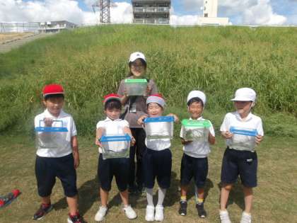 1年生は、3限に近くの淀川河川敷まで虫を捕まえに行ってきました。もうすぐ淀川花火大会が開催されることから、河川敷は草刈りをしてもらっていて、かなり歩きやすくなっています。1年生のみなさんは、網をブンブン振りながら走り回って、たくさんの虫を捕まえることができました。いいね〜!