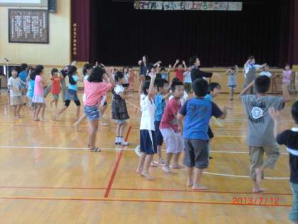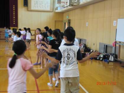 昨日、今日と2日間盆踊りの練習が体育館でありました。毎年盆踊りの先生をお招きして、地域や保護者と一緒に子どもたちも練習しています。8月10日・11日の東三国地域盆踊りではドンパン節やドラえもん音頭、河内音頭なども踊るのでしょうか。当日が楽しみです。でも暑いので水分補給も忘れずに。