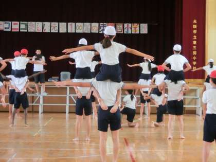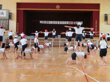 9月11日(木)5,6年生は運動会で組体操をします。連日体育館で練習を重ねています。一人技、二人技と増えていきます。難度も痛さも重たさも増えていきます。早くも首が痛い、腰が痛い、全身が痛いと訴える子どもがいます。筋肉痛と思われます。まだまだ3人技、4人技、など続いていくことでしょう。練習なしではなかなかうまくいきません。けがをしないように真剣に、コツをつかんで、協力し合って頑張ってほしいです。がんばれ5,6年生!