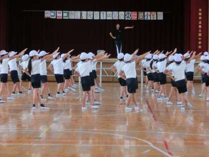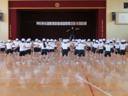 9月11日(木)3,4年生も運動会の練習です。先生も子どもも動きを確認しながら覚えていきます。軽快な音楽に合わせて踊るので子どもはすぐに覚えていきます。リズム感もバッチリです。手を広げて、体の向きを変えて、声を出して、屈んで、立ち上がって、横を向いて・・・楽しい表現になりそうです。元気を出して、声を出して、手はぴんと伸ばして、いっぱい注文がでますが大丈夫。3,4年生頑張れ!