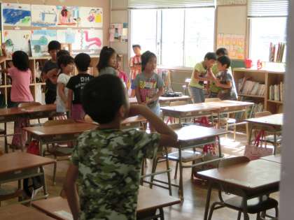 や英語の本の読み聞かせ、音楽に合わせてお友達と英語であいさつなど元気に楽しく学んでいる様子をほかの学校の先生方に見ていただきました。1年生は笑顔で過ごすことができました。