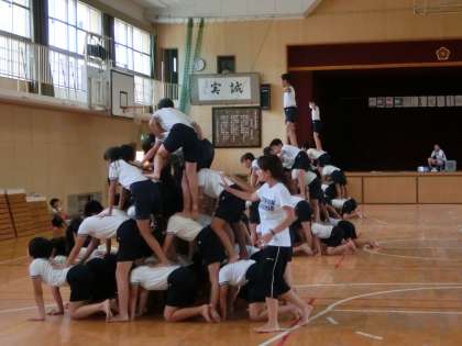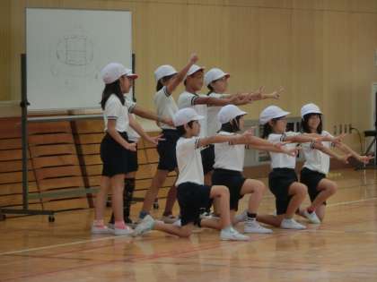 3,4年はダンスの出来栄えをみんなでチェックしあいます。上手なグループの動きを披露しあいより上手に表現できるようにしていました。5年生はつかのま、運動場で棒引きの練習です。そしてなんといっても組体操。ラストスパートのように大技の完成度を上げていきます。なかなか3段タワーができません。ピラミッドはだいぶ上達してきました。ピシッと決めてや。