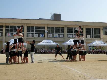 思わず見とれて拍手をしていると技が終わってしまい、写真を撮れなかったものがいくつかありました。ごめんね。その分、心にしっかり焼き付けました。2人技も3人技も上手でした。練習でうまくいかなかったグループもばっちり決めてきたようです。肩車からサボテンも決まっています。